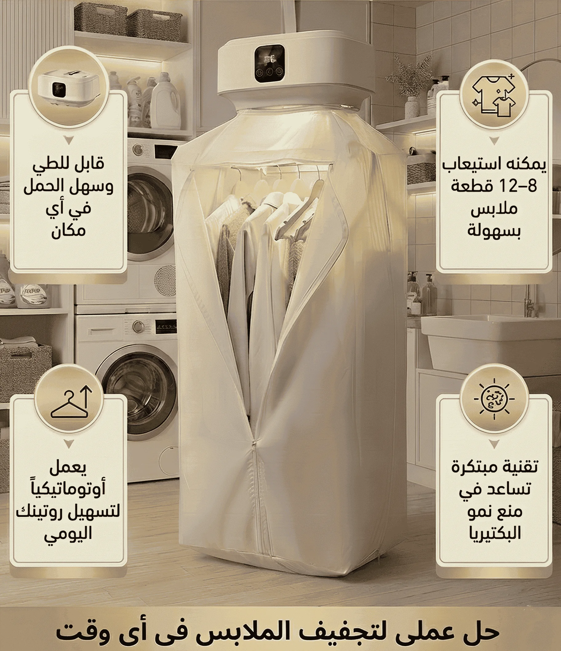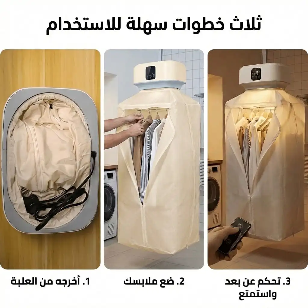 - وداعاً لمعاناة تجفيف الملابس بعد اليوم! احصل على ملابس جافة تماماً خلال وقت قياسي مذهل بفضل تقنية متطورة تمنحك أداءً سريعاً وفعّالاً، لتستمتع بيومك براحة تامة وبدون أي تأخير أو إزعاج، مهما كان الطقس أو الوقت.