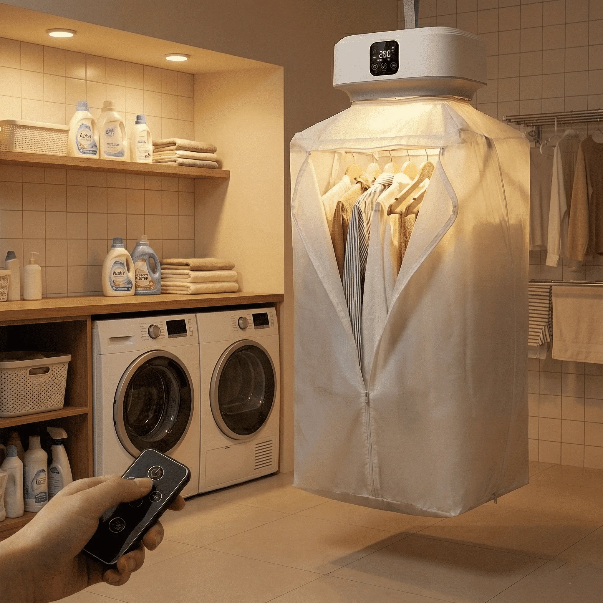 مجفف الملابس القابل للطي يوفر لك طريقة عملية، نظيفة وسريعة لتجفيف الملابس في المنزل أو أثناء السفر، مع حماية الملابس من الغبار والروائح.